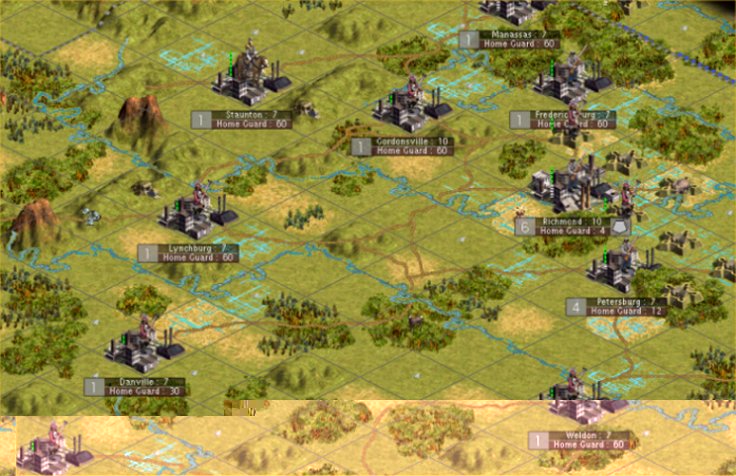 Beta Version 1.40: This is only a partial, summarized list. Salem, Va and Tupelo, Ms added. Massive redoing of population of cities, Home Guard placement, irrigation and building placement. Several cities have had another city not in the scenario combined with them. Several mines were added to Appalachian fringes. Many minor mistakes and bugs have been fixed. Several Confederate coastal cities have been strengthened. Most of the plains and forest stretching from Boston to Washington DC have been changed to grassland. All changes are documented in Version.txt in full.