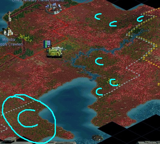 Furthermore my Bureau of Terraformation has sent out prospectors to our all our known lands to determine which regions would be most suitable for intensive agriculture due to high raininess combined with a low (industrially valuable) mineral presence. As a consequence they came up with the following plans to build condensers. What do you think?