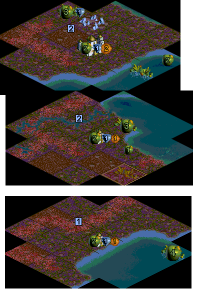 Workers 1-3: Rolling/moist/river, flat/moist/river, nutrient, rolling/moist/no river