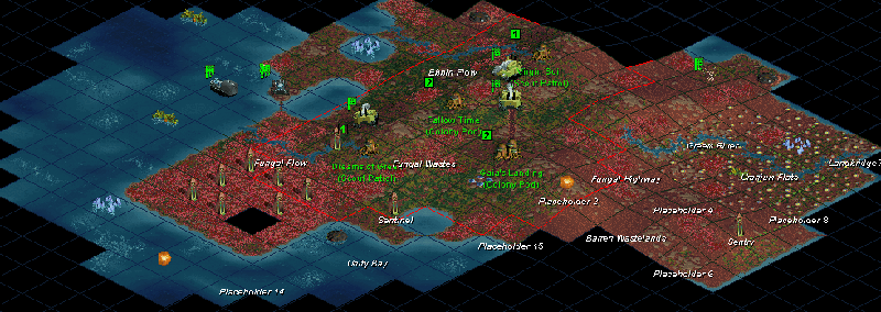 Dreams of Green has a high risk of danger, bordering with region of nearly 20 fungus tiles. While region betweeen first three bases is of no risk to MW spawning, this does. If it wasn't for our whining base would be lost next turn, since it would be left undefended (we wouldn't spot the MW). There are risks from MW spawning in fungal higway, placeholder 15, north of Ebbin Flow and east of Virgin Soil according to that, but the risk of spawning in Ruins is very high. Perhaps we should send SL in future to patrolit, spotting MWs, and perahps capturing one of two.