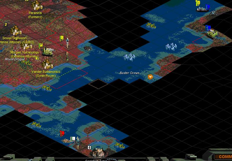 The Spartans completed the Command Nexus. They've also started the Maritime Control Center! As we noticed before, they're in Fundy. They are preparing to create the ultimate war machine. They will pump out fast, cheap elite infantry, and put them on super-fast cruiser transports (speed 8!), invading everything in sight. I'd like to point out that Missile Infantry are only two rows. So, the Spartans getting SFF will be a turning point in this game. We may not be able to leap-frog to DAP with them, because they could probably land a huge missile infantry force before we could build any planes.