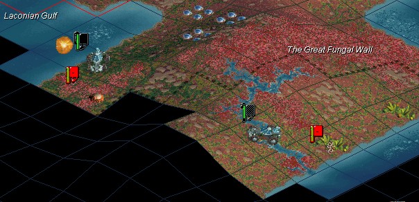 Next turn move SW to 50:14 (opens up that last black tile) then south on to the river/nut tile, ready turn after to move downriver and pop the pod in the fungus in the new base radius at 54:18 (having changed Westcrater's production to a rover former just before - if not a completion, we can change back without the minerals penalty)