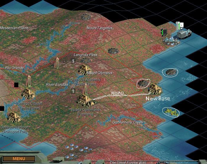 And if a mine were built on the rocky tile between (right where it says "road"), then it could be used by either this base or SC1 as the circumstances warrant