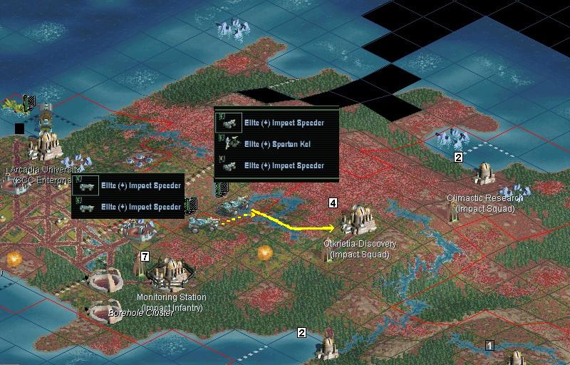 Our plans were to take Otk-Obs, then move over the road to Climatic Research to secure that eastern shoreline (and deny infiltration/techsteal to Morgan - that's the longstrider's mission (currently in Argos) - he'll next steal the Uni's maps then garrison ClimRes against probe action