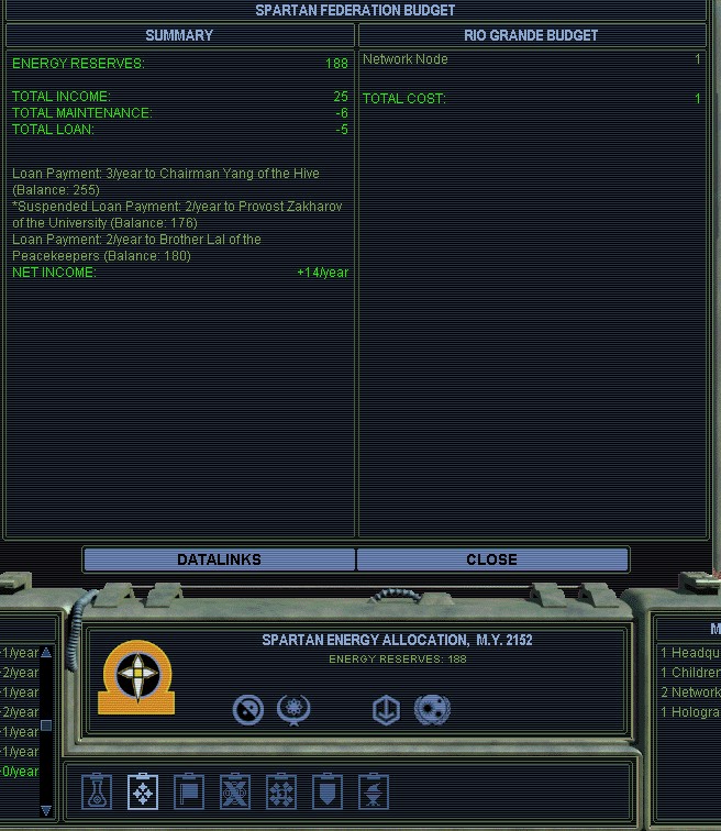 But I don't think Yang will risk war - he has only 2 impact units in the 4 bases nearest us, and seems to be gearing up for a Morgan conflict (as they themselves are, with 2 military units now in Red Fungus Resort and 2 probes in Choke-on-This