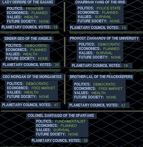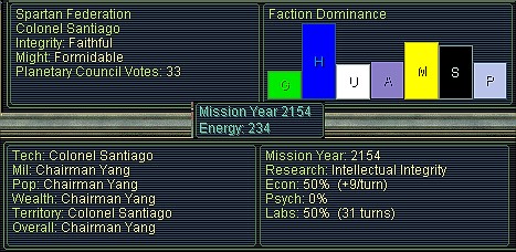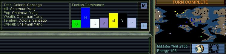 I also see that the situation re contacts is as it was the year before - Morgan hasn't yet met the Angels nor the Gaians, nor have the A's or G's met Lal or Zak. Our tenuous hold on the levers of inter-faction communications remains intact for another turn.