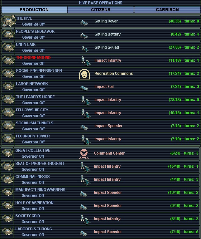 Look at the Hive's Gaian Expeditionary Army (stacked on that unit we see that I've hilited yellow) - and there are 3 more units that don't fit on the horizontal scroll below!!!