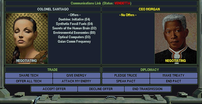Should I yank the Morganite chain and tell them that if they try to build the CDF, they can consider all peace negoations so far nulled and voided and that the price for further peace will be higher? Or would the CDF give them such a strong position that they wouldn't mind?I'm a little afraid that Morgan wuill get int Int from the Angels and use the "we're in vendetta" excuse to snag the CDF (they get the turn before the A's then pass it to us, so if we both instabuilt it, they'd get it)