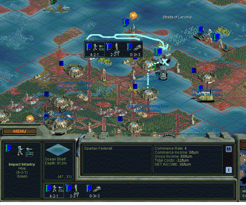 - Moved Heimdall to Invincible’s protection, and moived Iaci to cover the trannie heading for TH (and can head for that seapod below Iaci )