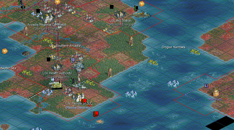 First order of business will be for the Commando Janissary (our missile-amed rover straddling the Southern Arcadian Highway) to take out the plasma defender at UN Health Authority (and if the road is blocked by a former, or whatever, then take the blocker out with one of our penetrators)