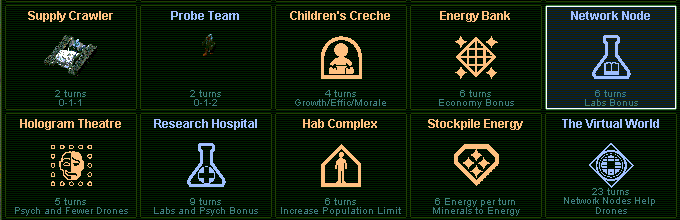 Yes, that works, though I would expect it to be considered a cheat in the case of the aero complex and hab complex I mentioned. However, in the case of the tree farm, you can very easily have the ability to build Hybrid Farms (Planetary Economics, level 4) before you can build Tree Farms (Environmental Economics, level 5). This is not the case in vanilla SMAC, where Environmental Economics is a prereq for whatever Hybrid Forests is tied to (maybe Planetary Economics at level 6). Also, tech trades/stealing, and getting PlaNet before Social Psych will prevent available facilities from being built."Cutlery confused Stalin"