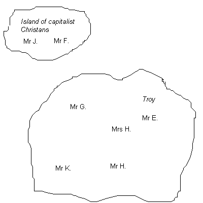 I'm attaching my best guess as to the map's structure.