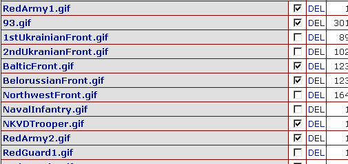 Greetings, I would like to suggest that the upload/ view images section of Apolyton be changed such that checkboxes be introduced so we needn't delete evry file one at a time. I have 60+ tiny files in there, and I want to tidy up a bit. This would make the uploads section alot more user friendly, and possibly lessen whatever load is generated by people deleting things 60 times in 10 minutes.