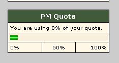 No, having a record that tells you how many you have makes perfect sense - especially if you're going to limit the number that people can store. I have no idea how your PMs work here as no-one has ever bothered to send me one, nor I anyone else, but at CFC there was a bar showing you how much of the PM inbox you had used. I'm pretty sure there was some kind of fancy colour-coding system so that you started off green and then went yellow, orange and red as you got closer to the limit for PMs. If Thunderfall can implement this then surely 'poly can too.