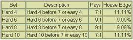 Snake eyes and Box cars can only be made one way, the "hard" way. Other numbers such as 8 can be made in other combos (5 and 3 or example).