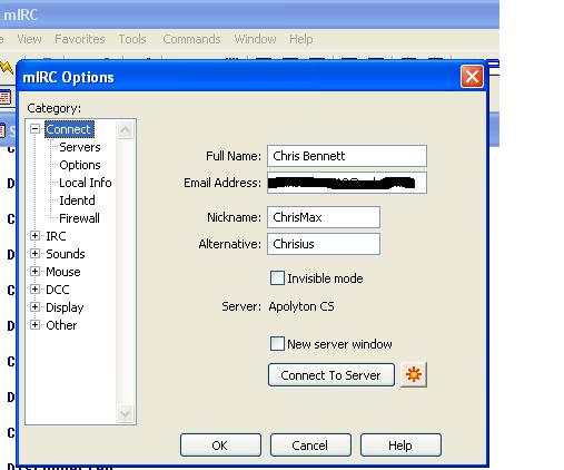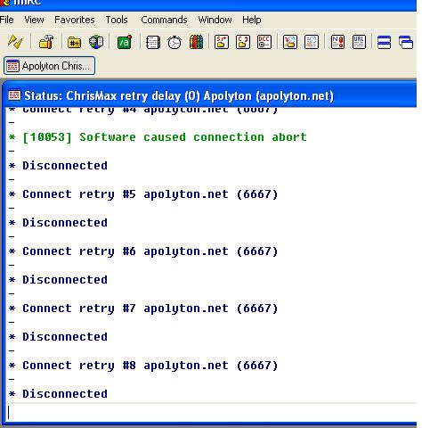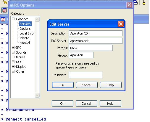 I have followed the instructions to the letter and have Mirc installed and running, I can get a #apoyton window up but not on the Apolyton server. For some reason the Apolyton server wont connect at all.