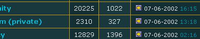 Pentium 4 1.5 GHz, 256 MB RAM, Windows 2000, IE 5. Resolution 1024x768. On the main forum page I saw those thingies that show the time last posts in the forum was made, and also saw by whom was it made: like 07-06-02 at 13:18 by MarkG.
