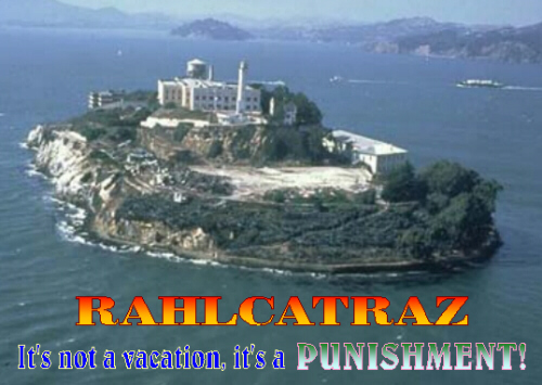 Right underneath the wording rahlacatraz, in small letters.... It's not a vacation, it's punishment.