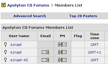 2) the deletion of the other Azreal from Apolyton. That other guy hasn't posted for a long time, so I doubt he would mind.