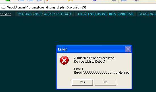 .In the recent few days, I was bombarded with those UUUUUU errors. After hooking my debugger up, here's what I got today, on loading a page.