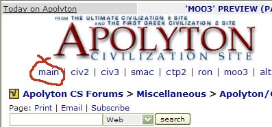 Then again, the "main" link just under the Apolyton logo also links to the Apolyton main page. So there is a link available at both the top and the bottom of each page.