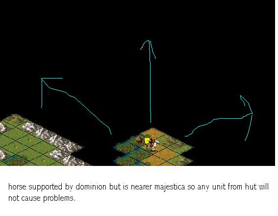 Horse is exploring in the North/East and next to a hut (nearer to Majestica) I suggest it pop the hut and then continue exploring. *popping hut will not cause support problems if a unit comes out.