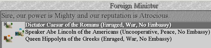 , try to get peace with Greek…but they want 200G…In a parallel Galaxy maybe, but not here - - > WAR they can have160AD : Greek Chariot kills our diplo