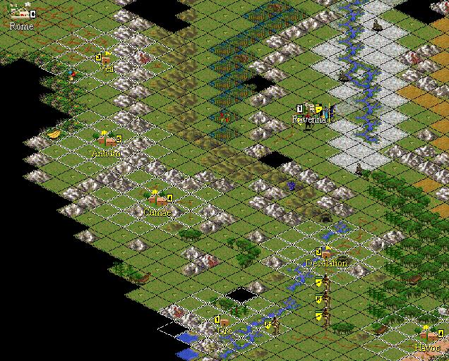 1. From Havoc north and west to Veii (The Gaulic Province) to engage the Romans and find the cities they have established in previously-explored territory.
