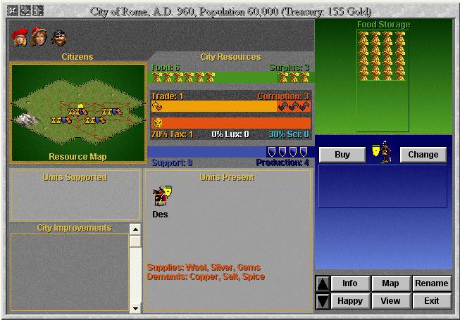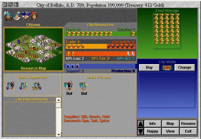 Buffalo will revolt for 292G…Pop hut:50G we currently have 225G…I investigate the city…2units defending,no imp,…I might switch our Xin-orders to cash(we’re at a Xin turn) and buy the city)…
