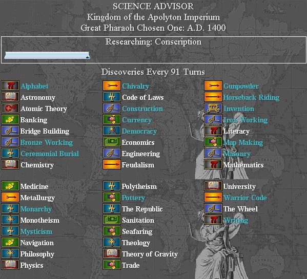 1320AD: Zulus build Copernicus, Americans discover Navigation, Now they are researching Physics. An Amarican chariot ran into the walls of the fortress surrounding our chariot near Buffalo...there were no survivors found, our chariot is still trying to wash the blood of the walls.
