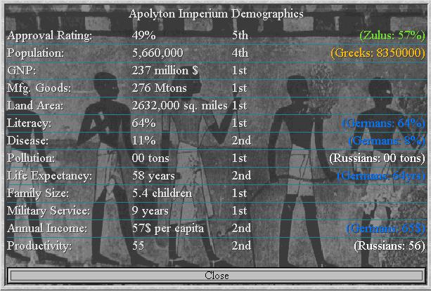 We find the Greek city of Apollonia, a dip has been dispatched to bribe it.We find a settler in a hut NE of Melkweg. Americans want peace