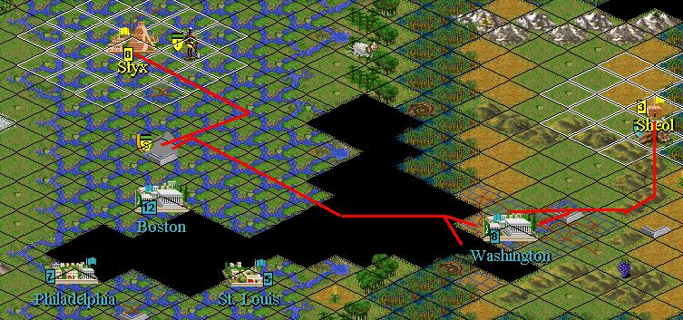 3. Ignore Boston. It has nothing of value to us compared to Washington or New York. We can leave a few units in the fortress there to lure an attack, and the rest can move east toward Washington.