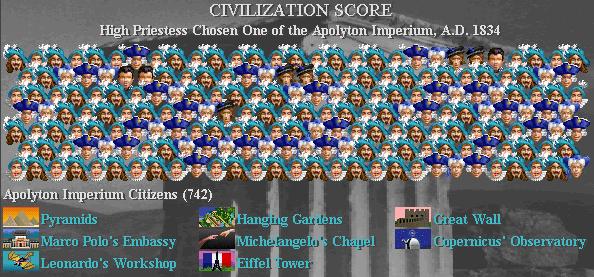 1826 – Zulu becomes Republic. Greeks get Explosives from Germans. Stuttgart is new capital of Apolyton Imperium and becomes unbribable. Find Greek Crete ENE of Shield. Get another Zimbabwe shield square occupied and fortify all adjacent units. Capture Barb Leader for 150G. Establish city of Obiwan on American river system. Kill 2 Greek Dragoons at Apolonia with 2 Cavalry, both get Vet. Kill Zulu Dragoon leaving Bapedi with a Cavalry. Moving escorted Dips toward outlying Zulu cities. Laid a few ambushes for wandering Barb Crusaders.