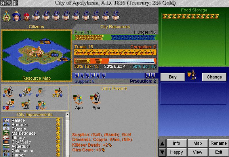 1822 - Settler built in Apolytonia, start Explorer. Change to non-Xin. A.S. Sparrowhawk departs with Settler, other Caravel heading toward Apolytonia. Egyptian city Giza in Revolt.