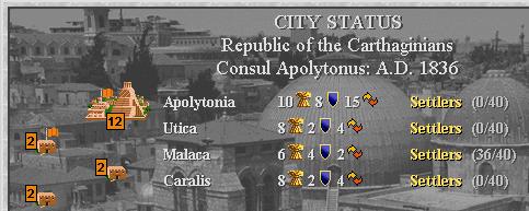 1836 - Caralis builds Temple, starts Settler. Utica builds Settler, starts Settler. Caravan finds 2nd Whale near Whale and Wine; we have a good spot for new city.