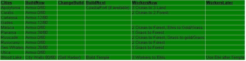 I think that a primary goal would be to take more Sioux cities and get Coastal Fortress. My recollection is that Coastal Fortress was a Sioux tech from Ben's version of the advance. Right now, our cities are avoiding ship attack because they have no defenders to kill and the AI's have delivered no transports with ground units. We would be foolish to assume that situation will last for long, yet building less than Armor in a city without a Coastal Fortress is nearly futile. A Musketeer would certainly be killed at once by any passing ship. We are playing a very dangerous game having no defenders in our coastal cities!