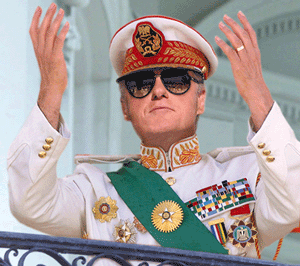yeah, the pic makes me think mussolini even though there werent color photos (i dont think) back then...I think it's the clinton image from the onion story of him naming himself president for life during the 200 election mayhem (which Gore DID win )
