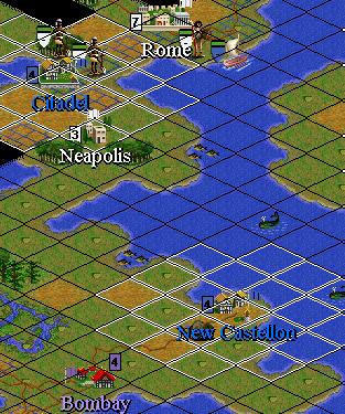 1140 - Romans discover Mathematics. A Trireme (fully healthy) carrying a Legion and a Warrior refuses to move more than 1 square. ??? Maybe the Warrior is causing some problem with the Captain. Trireme bearing 2 Caravans arrives at Nalduria. 1 is off-loaded to assist in Leo's. 20 shields to go. I decide to send the Spice Caravan to Rome to help with science research. I can buy Leo's now cheap.