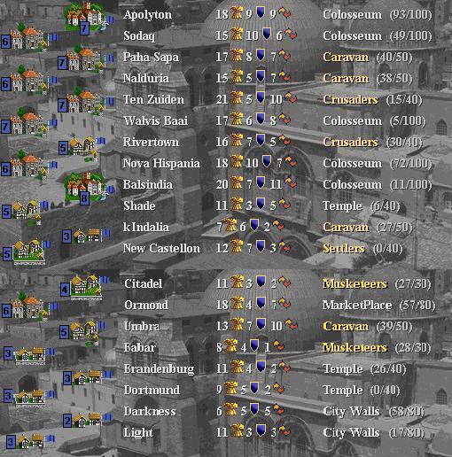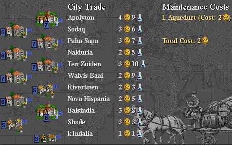 1280 - Diplomat arrives at Elephantine to check on construction of Adam Smith's. Discovers Indian Elephant plus unknown unit(s) fortified 1 square NW of city. Diplomat investigates city and finds that Adam Smith's is about 80 shields away from completion. Shield production is only 2 per turn. There is only 1 Phalanx in Elephantine! May take some time for the Egyptians to complete their Wonder!