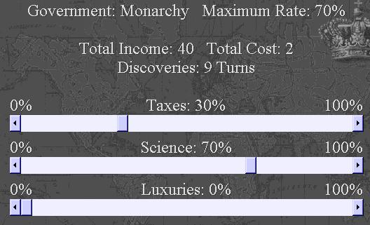 We discover Astronomy, and we are now researching Democracy! Things are falling in our favor. I receive a notice that we are now 3 million Citizens strong. Sounds good. I check the Tax Rate box - Income 39, cost 2. Wow!