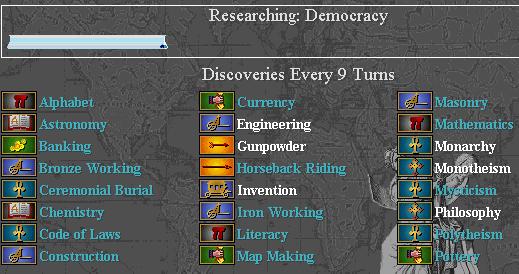 1300 - Egypt discovers Mysticism; Carthaginians "about to build Copernicus's". Oh well, can't do much about that but will put that on the list of things to take someday! Moving some units to convenient pick-up locations when their absence won't bring the cities to revolt.