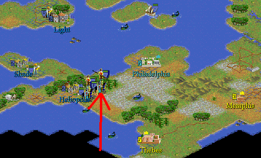 At the moment our units outside Heliopolis prevent any land-based force attacking that city via a complete occupation of the land to Heliopolis' east. On observation of the map, you can see that (excepting caravans/diplomats from our enemies), a unit or two placed on the hills immediately E of heliopolis would prevent all land units reaching us (, provided there are defenders in Heliopolis itself.