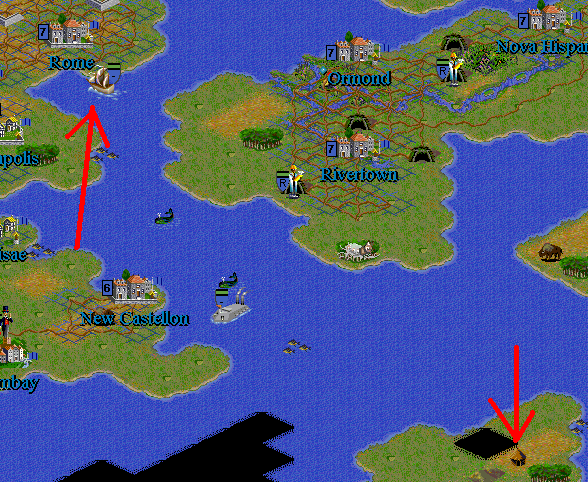 ), and escort them to the hut, where we may hope for tribute form these savages in exchange for our superior teachings.Alternately the Caravel could station itself in Citadel and await troops to transport across the waves to Babylon or Carthage.