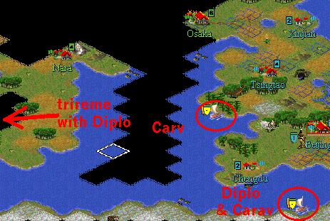 1) do we send a trireme to obladi? stationed there it can patrol, transport caravans to the carths for quick profits and diplo's for cheap units.