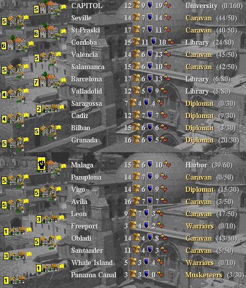 Build Courthouse in Valladolid.1500 - Explore with Triremes, move Caravans and Diplomats. Have to disband Freeport Horse to prevent permanent Disorder.