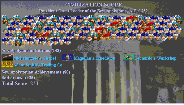 Civ2 Demo Game #1 City-Planner, President, Historian Civ2 Demo Game #2 Minister of War,President, Minister of Trade, Vice President, City-Planner Civ2 Demo Game #3 President, Minister of War, President Civ2 Demo Game #4 Despot, City-Planner, Consul