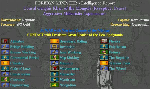 The Mongols are our "Key Civ", so our tech research costs depend on how many they have compared to us. I think we should gift them most of our techs to reduce our costs. We'll make it up by advancing even faster as a result.