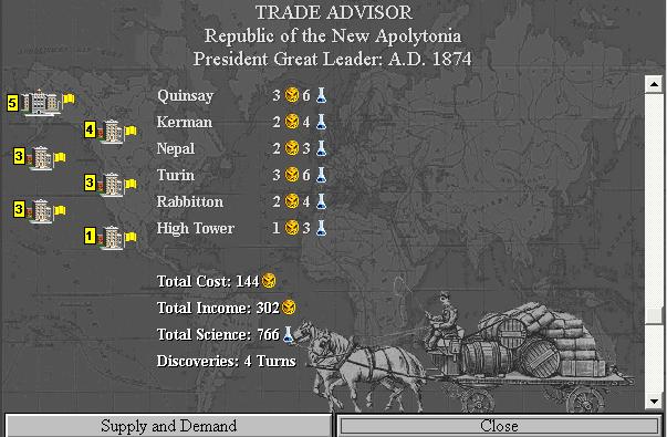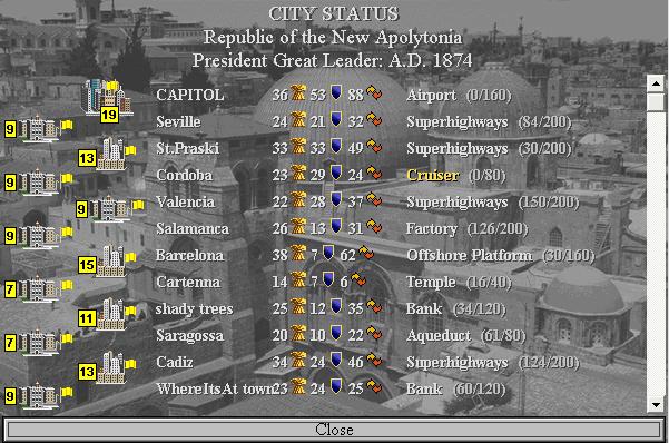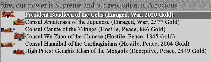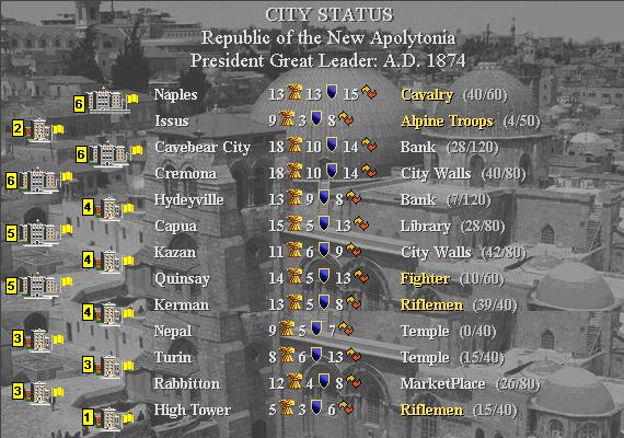 So that's where we are. We've got a new enemy now, but a few new cities. I'm sending out the savegame, so I'll give the ministers a day to analyze the game, 3 days for polls, and I'd like to play again on Tuesday or Wednesday.