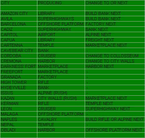It will not surprise me if there are alternate suggestions for the actions in some cities. That's why I'm presenting specifics...