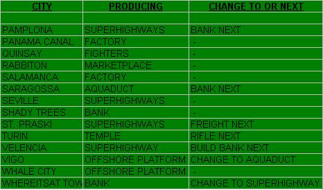In view of all the discussion of city-plans and the changes that I've made, I thought it would be a good idea to display the current recommendations...